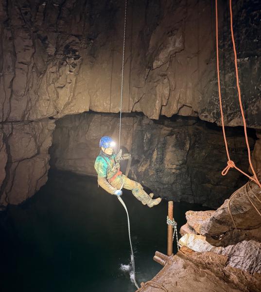 Chris's photo of a caver on a ladder in Esztramos Cave in Hungary won second place in the general Caves section and also the second Sami Karkabi Photographic Award.