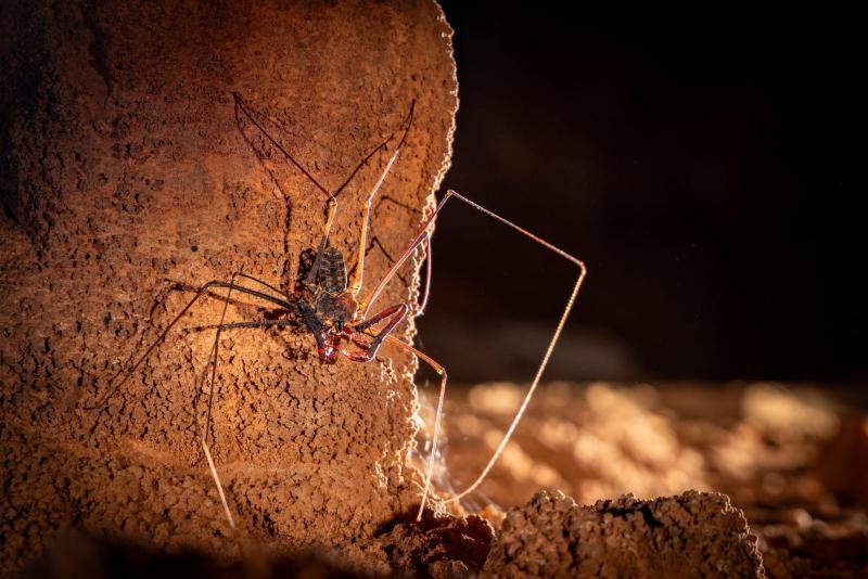 On the far side, the cave changed character, the passageway becoming far smaller (but still HUGE by UK standards) and interspersed with car sized stal bosses that oozed down the walls. Also just on the other side of the bedding plane, we encountered another of the cave's features, and this one was quite large. Amblypygi, is the local name for them, although they're probably better known as Tailless Whip Scorpions. And once you get past how alien and terrifying they are, they’re actually quite cute. They are also completely benign, the worst they could do would be to give a nasty nip, but in my experience they always just ran away.